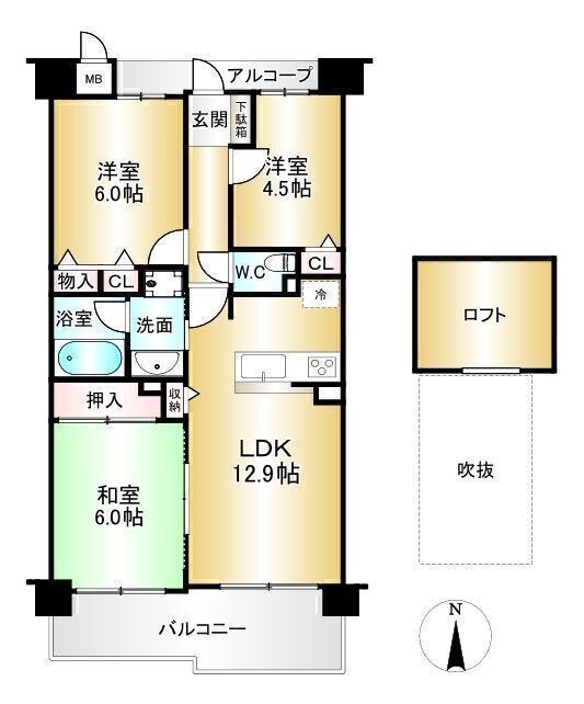| 主要採光 | 南向 | バルコニー | 南向9.48㎡ |