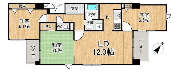 - 2面バルコニー
