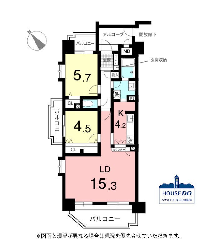| 主要採光 | 南向 | バルコニー | 南向15.69㎡ |