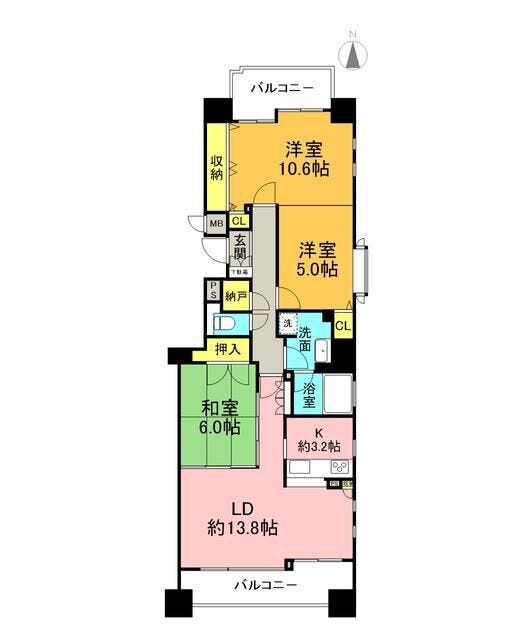 | 主要採光 | 南向 | バルコニー | 南向13.66㎡ |