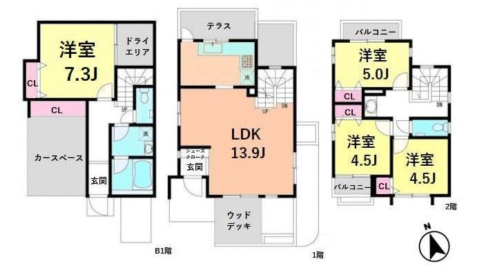 ・ドライエリアやウッドデッキ、両面バルコニーあり