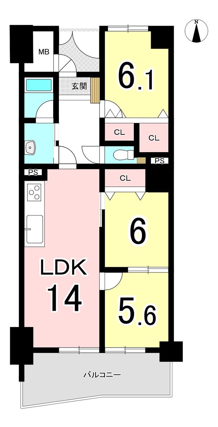 | 主要採光 | 南向 | バルコニー | 南向8.61㎡ |