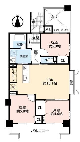 | 専有面積 | 壁芯 68.48㎡ | 所在階 | 7階建/3階部分 |