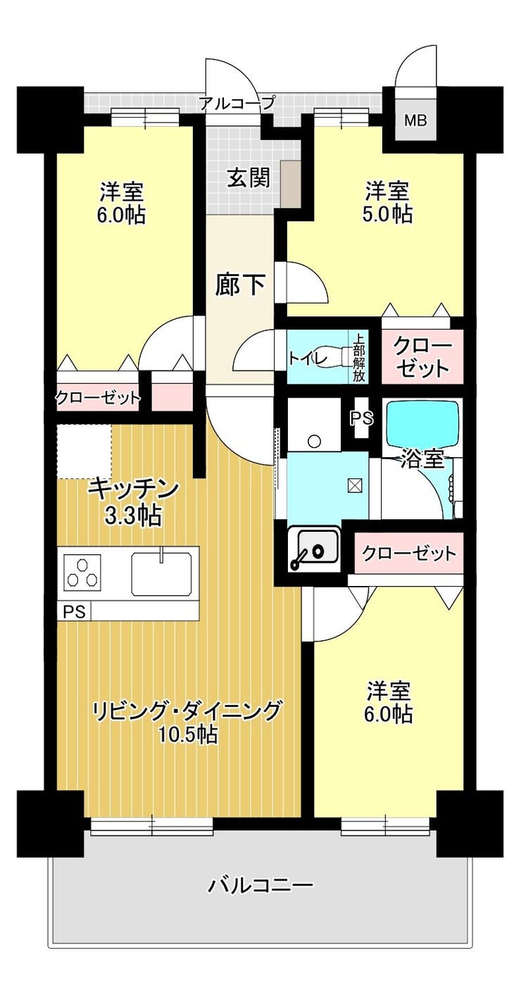 | 主要採光 | バルコニー | 9.60㎡ | |