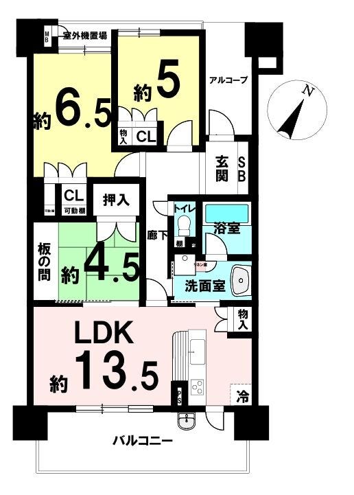 | 主要採光 | 南東向 | バルコニー | 南東向13.20㎡ |