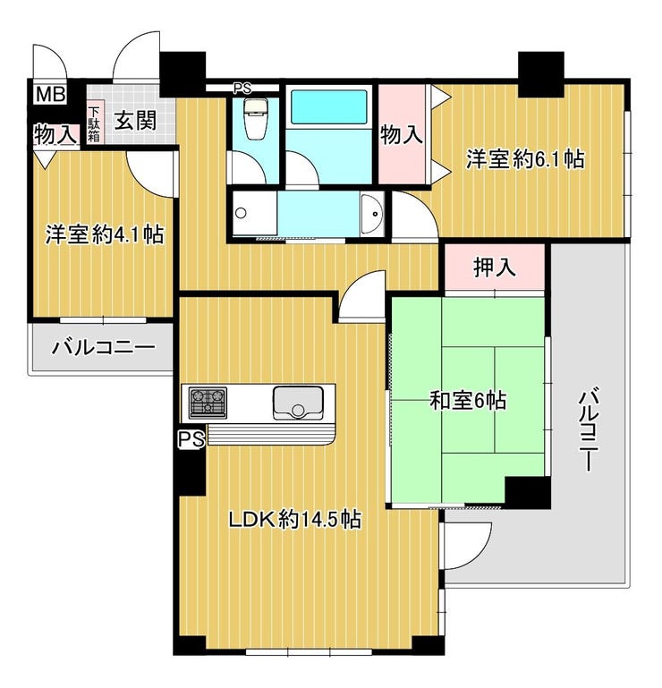 | 専有面積 | 壁芯 68.70㎡ | 所在階 | 6階建/3階部分 |