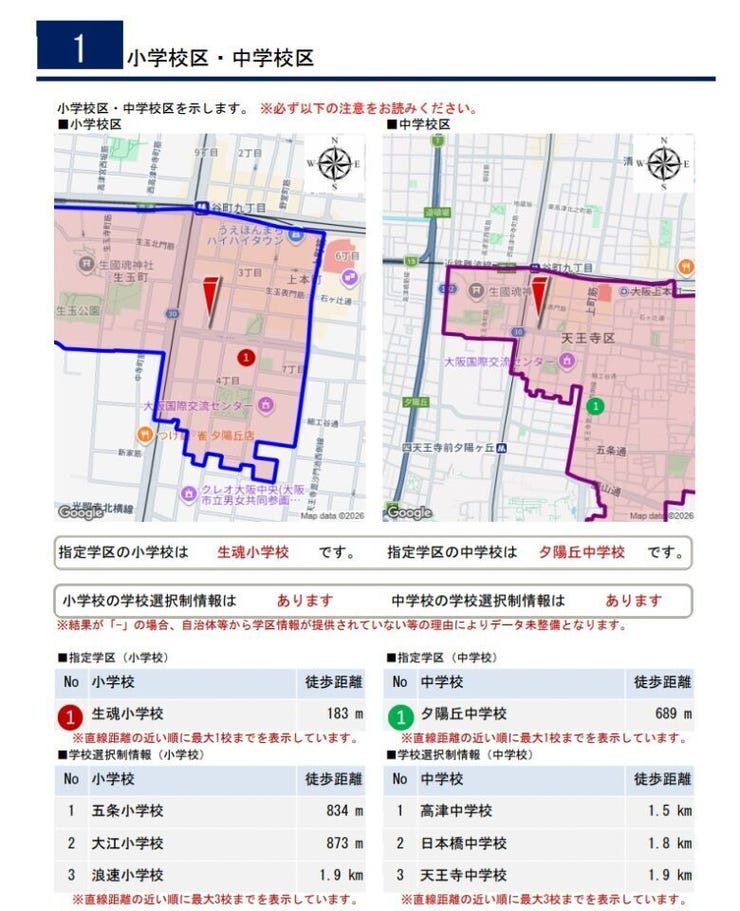 | 小学区 | 生魂小学校 徒歩3分 (約183m) | 中学区 | 夕陽丘中学校 徒歩9分 (約689m) |