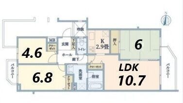 - 2面バルコニー