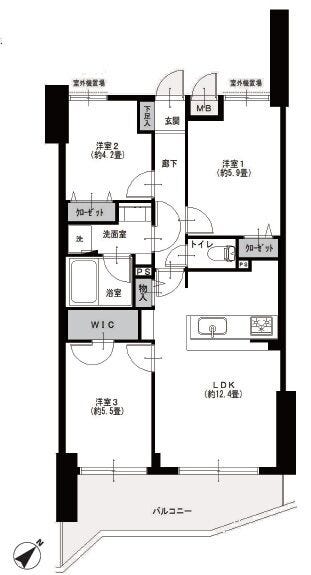 | 専有面積 | 62.41㎡ | 所在階 | 5階建/2階部分 |