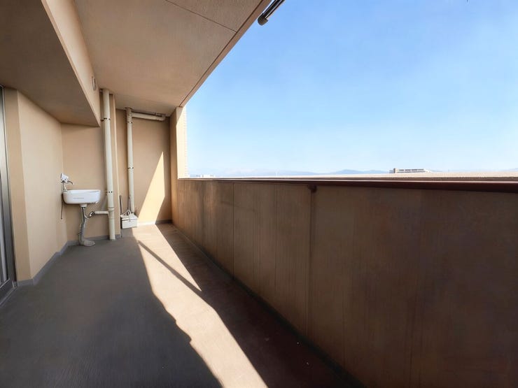 奥行きと横幅のあるワイドバルコニーも大きな魅力。洗濯物干しはもちろん、チェアやテーブルを置いてカフェスペースとして活用したり、家庭菜園やガーデニング、ペットとのくつろぎスペースとしても楽しめます。スロップシンク(水栓)付きで、ガーデニングの水やりやペットの足洗いにも便利。外の風を感じながら読書やリモートワークをする“第二のリビング”としても活用できます。