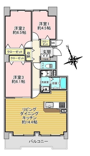 | 専有面積 | 壁芯 70.22㎡ | 所在階 | 14階建/2階部分 |