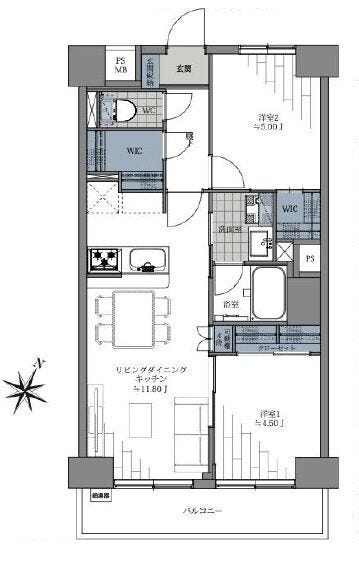| 主要採光 | 南向 | バルコニー | 南向5.40㎡ |