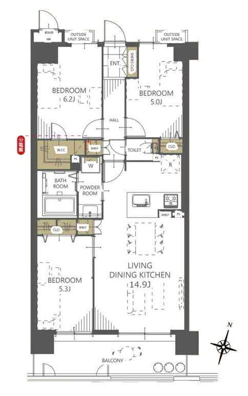| 主要採光 | 南向 | バルコニー | 南向10.80㎡ |