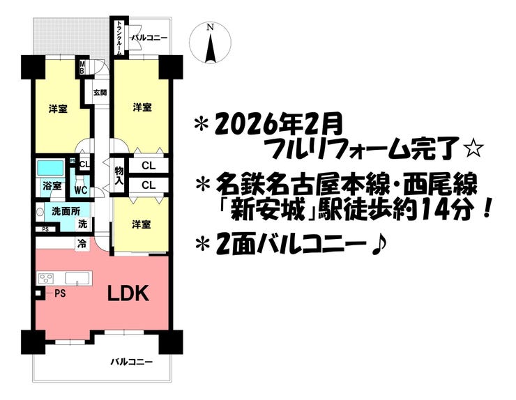■名鉄「新安城」駅徒歩約14分■2026年2月リフォーム■2沿線利用可■全居室収納■周辺施設充実