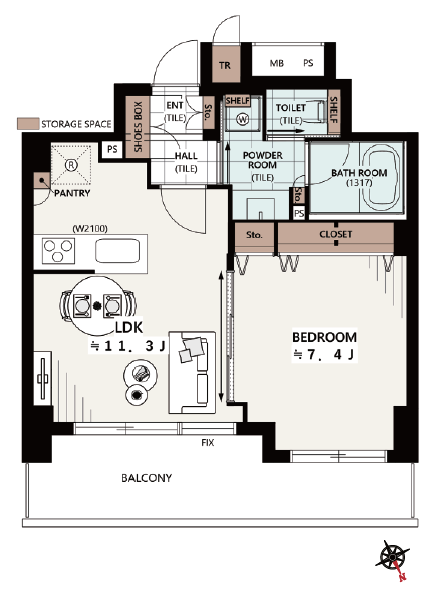 | 専有面積 | 44.44㎡ | 所在階 | 10階建/3階部分 |