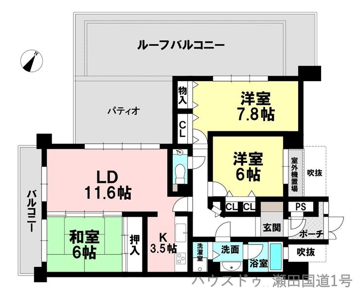 | 専有面積 | 壁芯 78.21㎡ | 所在階 | 7階建/6階部分 |