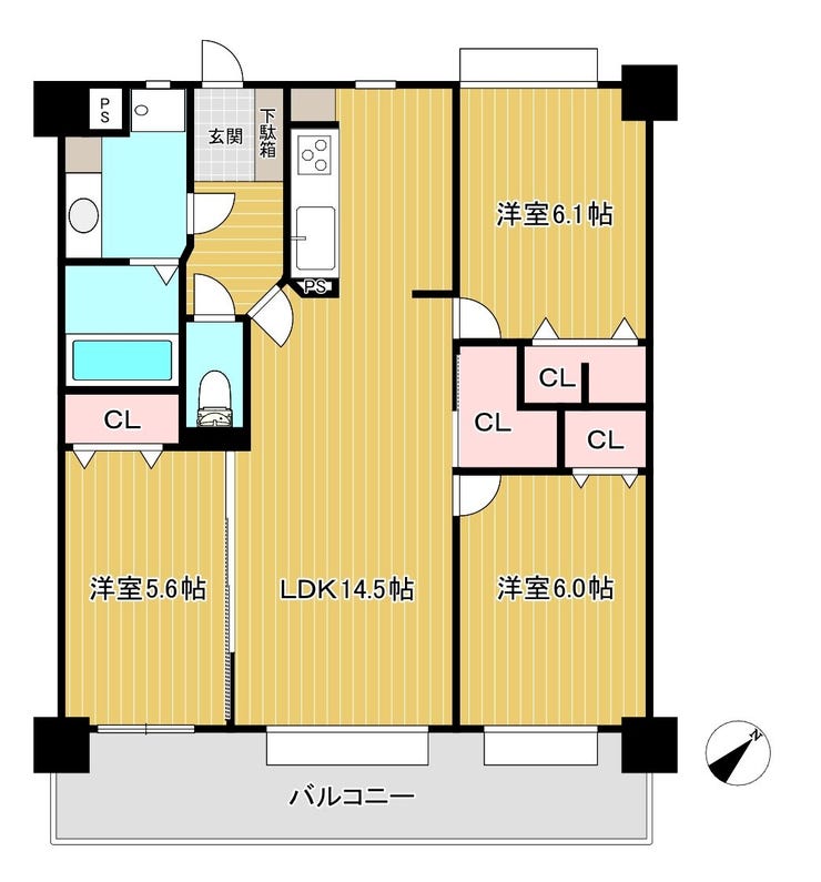 | 主要採光 | 南東向 | バルコニー | 南東向14.58㎡ |