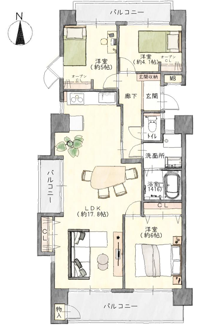 | 主要採光 | バルコニー | 15.20㎡ | |