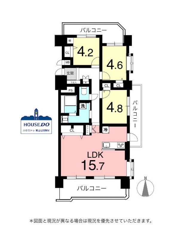 - 3面バルコニー