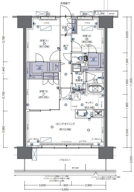 | 主要採光 | バルコニー | 南向13.70㎡ | |