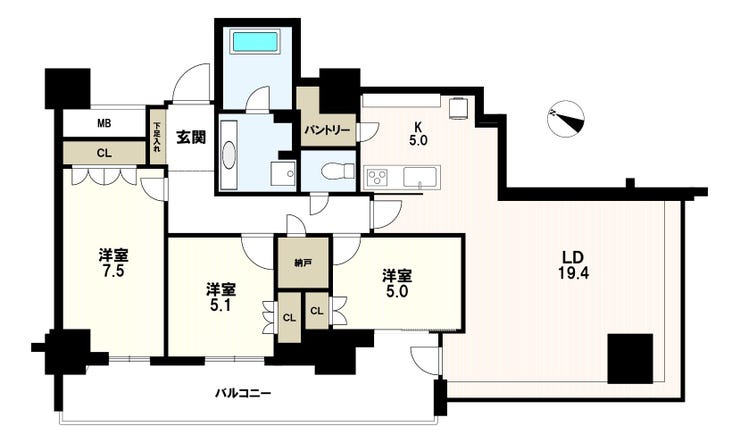 | 主要採光 | 南西向 | バルコニー | 南西向13.68㎡ |