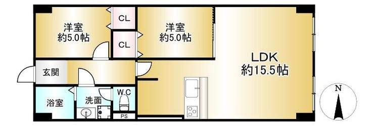 LDK約15.5帖の2LDKです!単身・二人暮らしにはピッタリのお住まいです♪