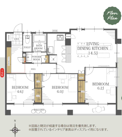 | 主要採光 | 南向 | バルコニー | 南向13.20㎡ |