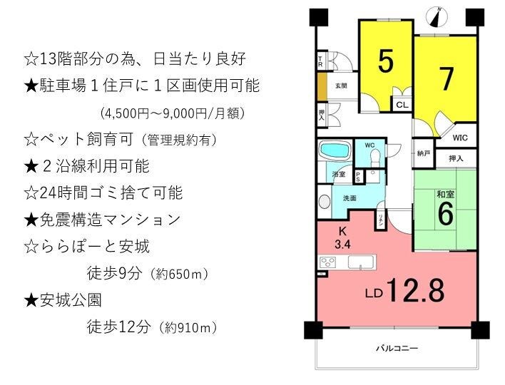 | 小学区 | 安城中部小学校 徒歩5分 (約350m) | 中学区 | 安城北中学校 徒歩13分 (約1000m) |