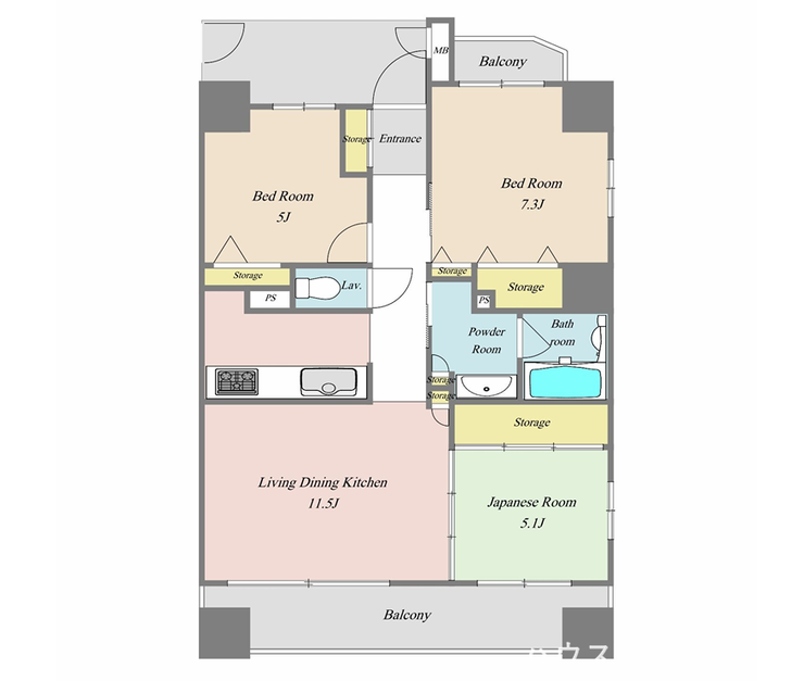 | 主要採光 | 南向 | バルコニー | 南向7.00㎡ |