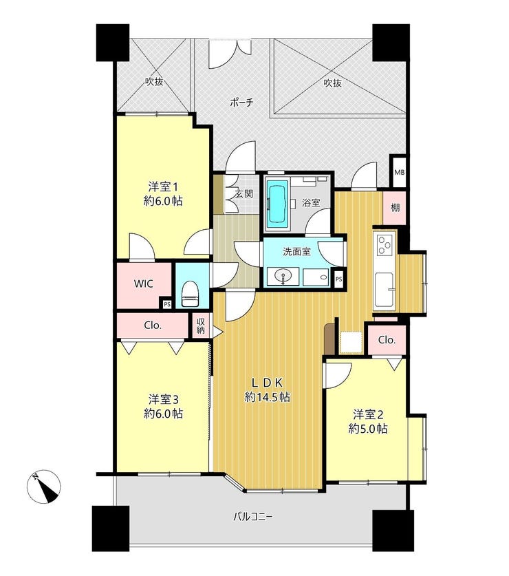 3LDK+WIC 新規リフォーム 南西向 陽当り良好