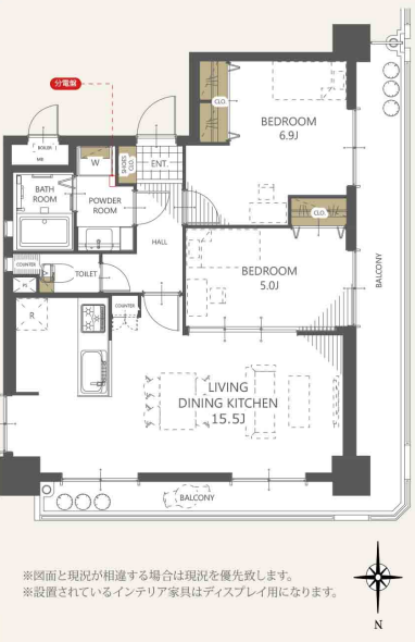 - 2面バルコニー