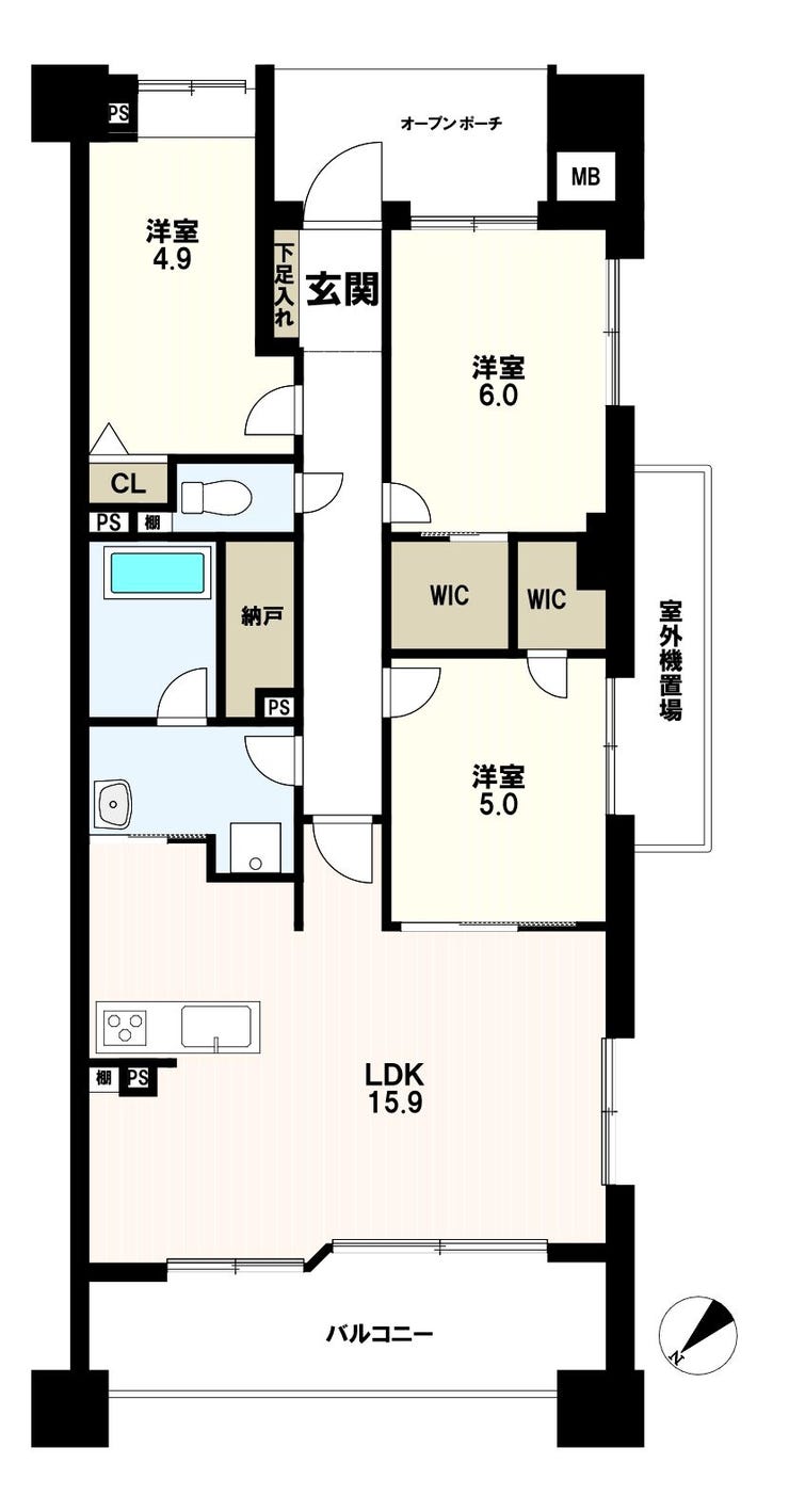 | 主要採光 | 北西向 | バルコニー | 北西向11.84㎡ |