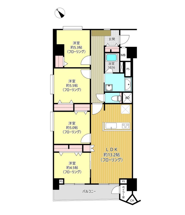 | 専有面積 | 壁芯 79.36㎡ | 所在階 | 10階建/4階部分 |