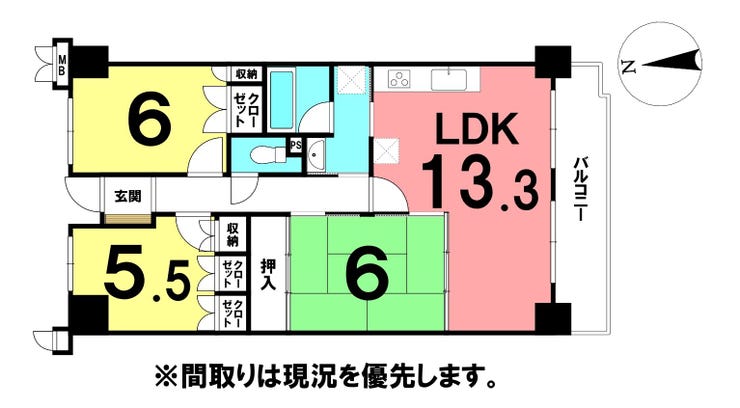 和室付きの3LDKは、老若男女どなたにも使いやすい間取りです♪