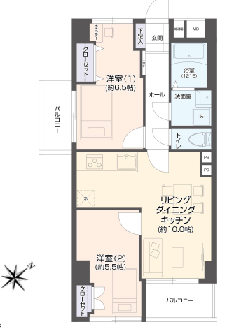 | 主要採光 | 南東向 | バルコニー | 南東向6.50㎡ |