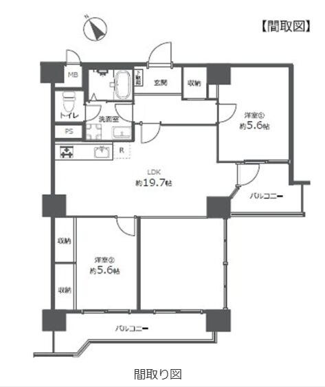 - 2面バルコニー