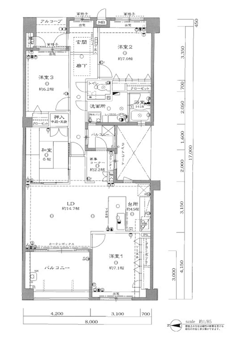 | 専有面積 | 壁芯 111.22㎡ | 所在階 | 7階建/7階部分 |