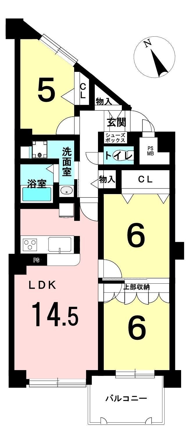 | 専有面積 | 壁芯 69.69㎡ | 所在階 | 6階建/3階部分 |