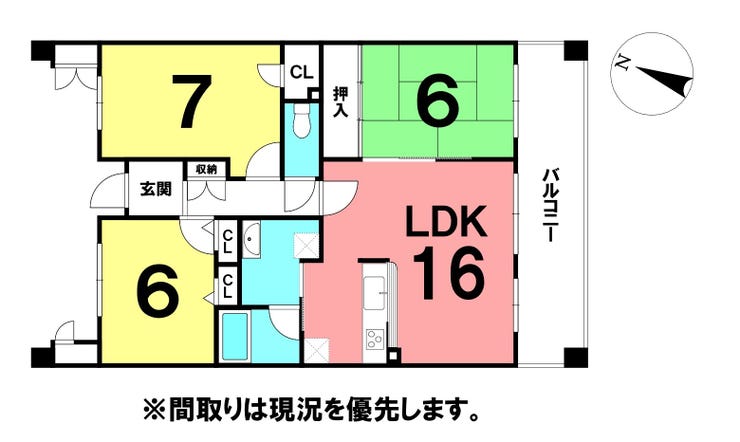 全居室6帖以上・LDK16帖のゆったりとした広さ
