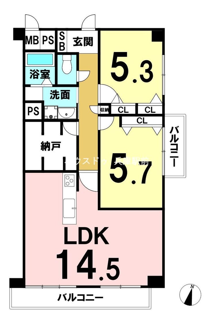 - 2面バルコニー