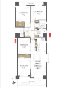 | 専有面積 | 壁芯 93.32㎡ | 所在階 | 14階建/3階部分 |