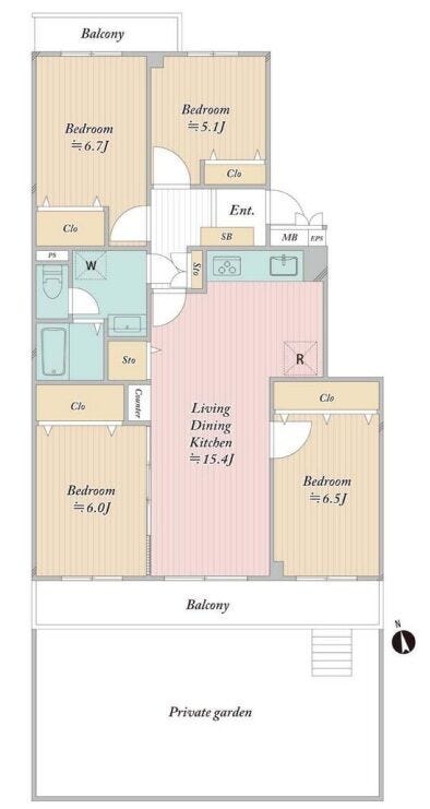 | 主要採光 | 南向 | バルコニー | 南向15.28㎡ |
