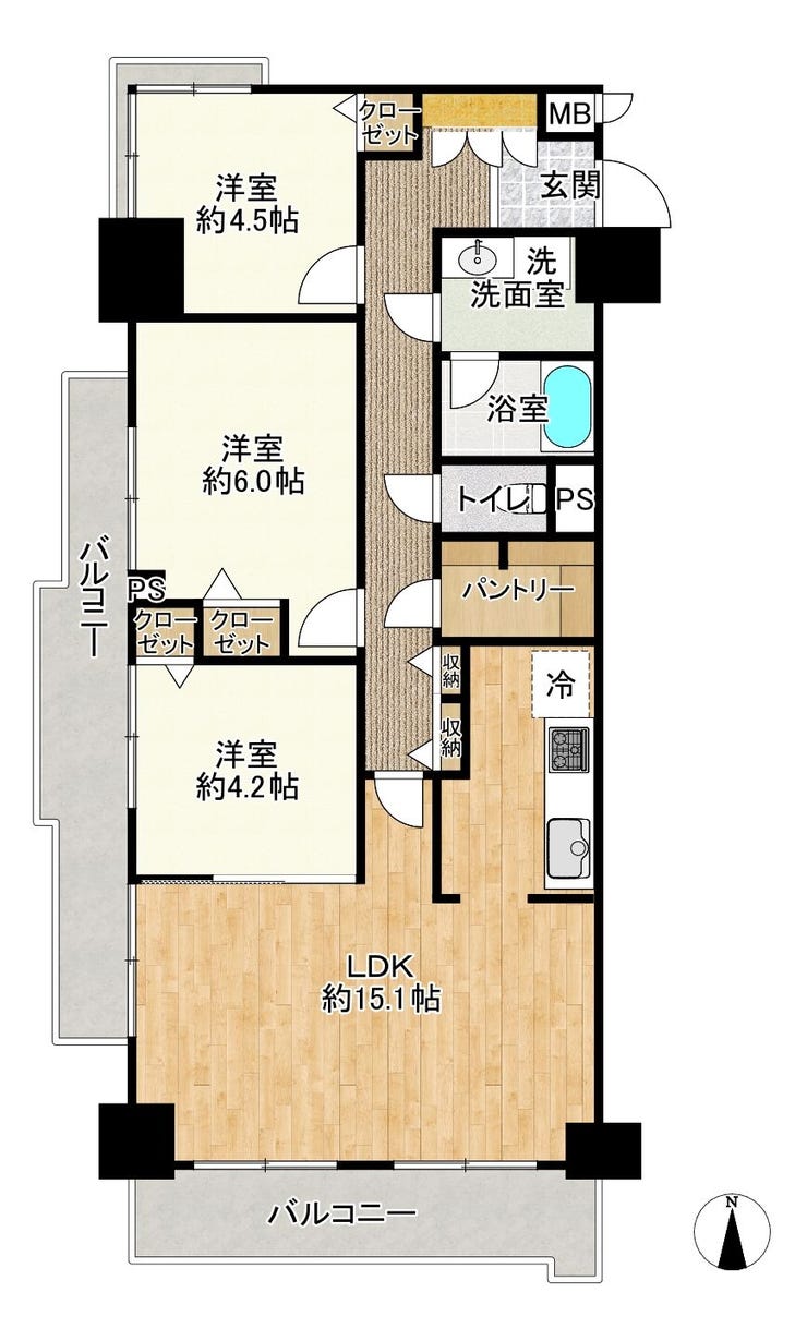 | 主要採光 | 南向 | バルコニー | 南向13.98㎡ |