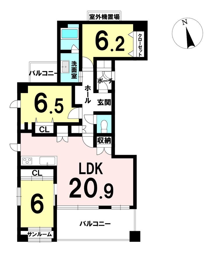 | 主要採光 | 南向 | バルコニー | 南向12.73㎡ |
