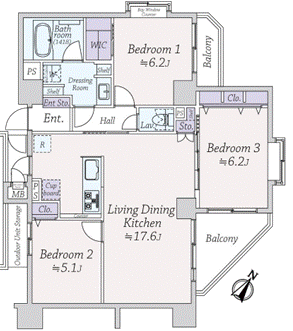 - 3方角住戸