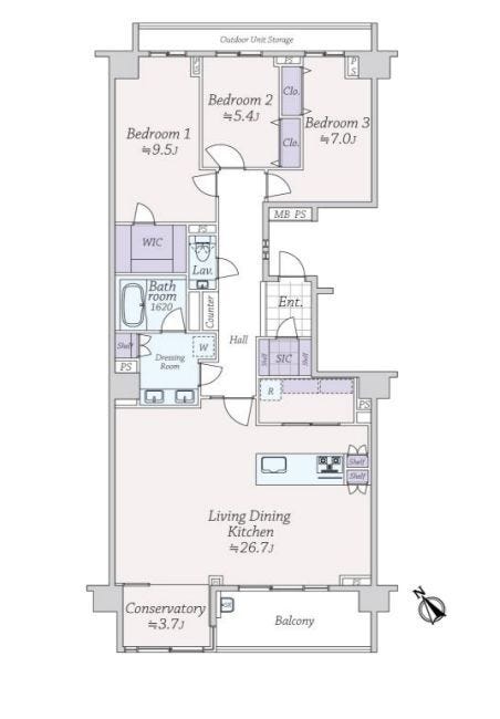 | 主要採光 | 南西向 | バルコニー | 南西向9.82㎡ |