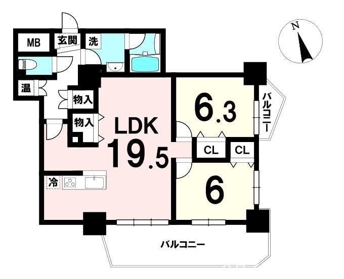 - 2面バルコニー