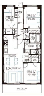 | 専有面積 | 壁芯 71.58㎡ | 所在階 | 15階建/7階部分 |