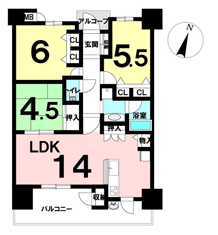 | 主要採光 | 南向 | バルコニー | 南向12.94㎡ |