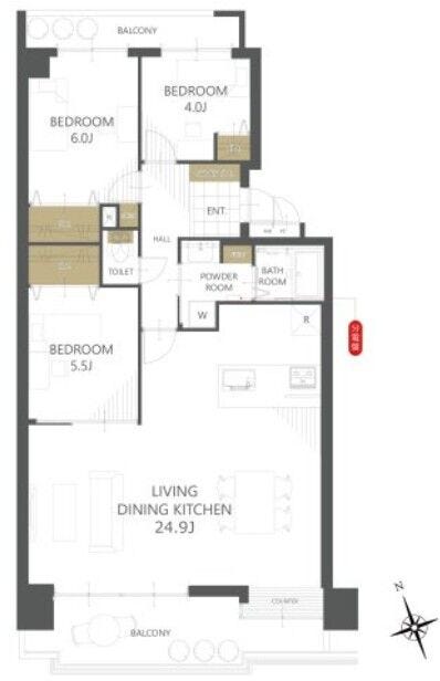 | 主要採光 | バルコニー | 南西向15.97㎡ | |